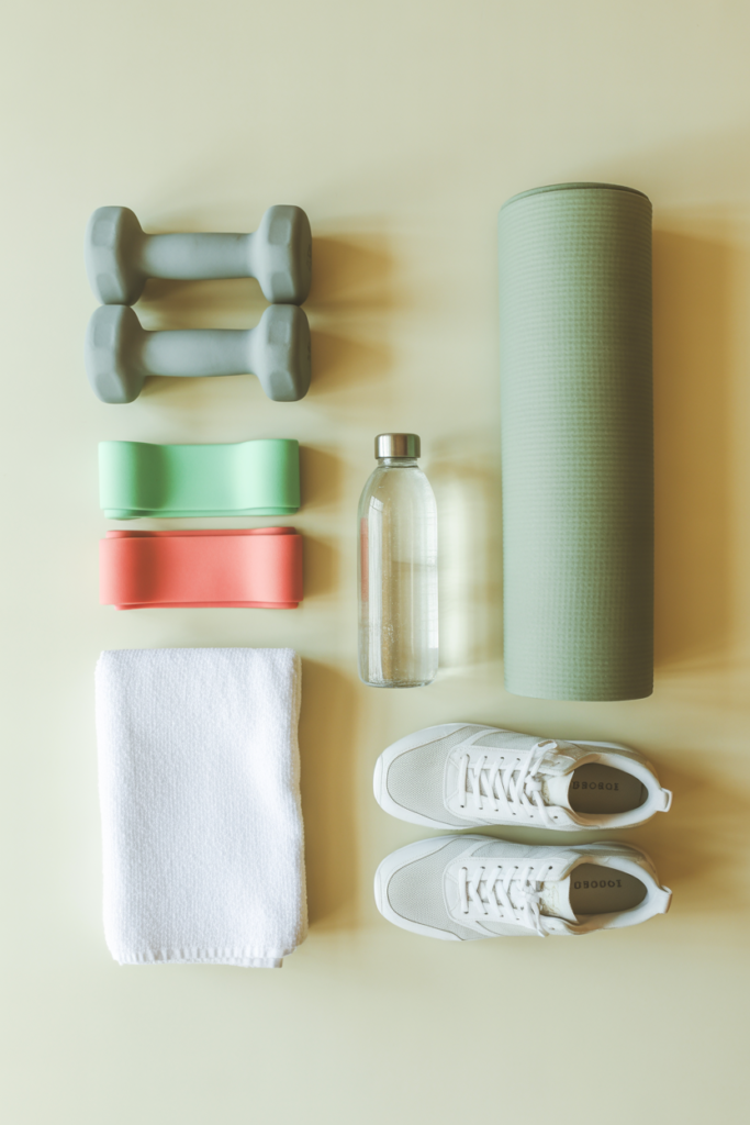 Even if you don’t have all of these yet, you can start right now using household items like water bottles or a sturdy chair.