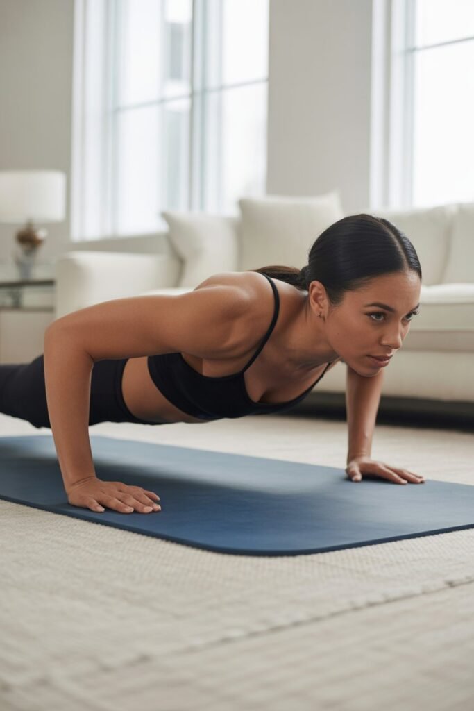If regular push-ups feel too difficult, try knee push-ups or wall push-ups. What matters is control and form.