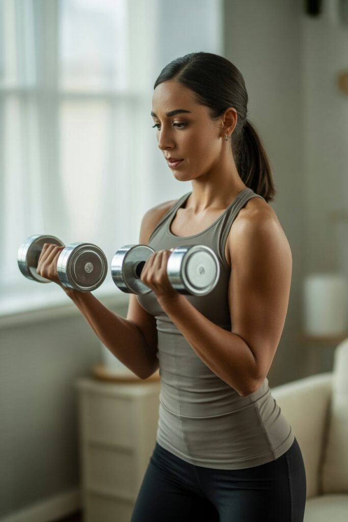 - Dumbbells (2–5 lbs for beginners, heavier as you progress)